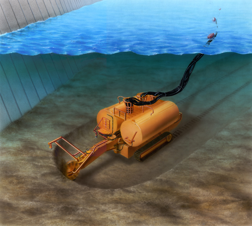 ダムの土砂を取り除く機械のパンフレットの表紙に使用